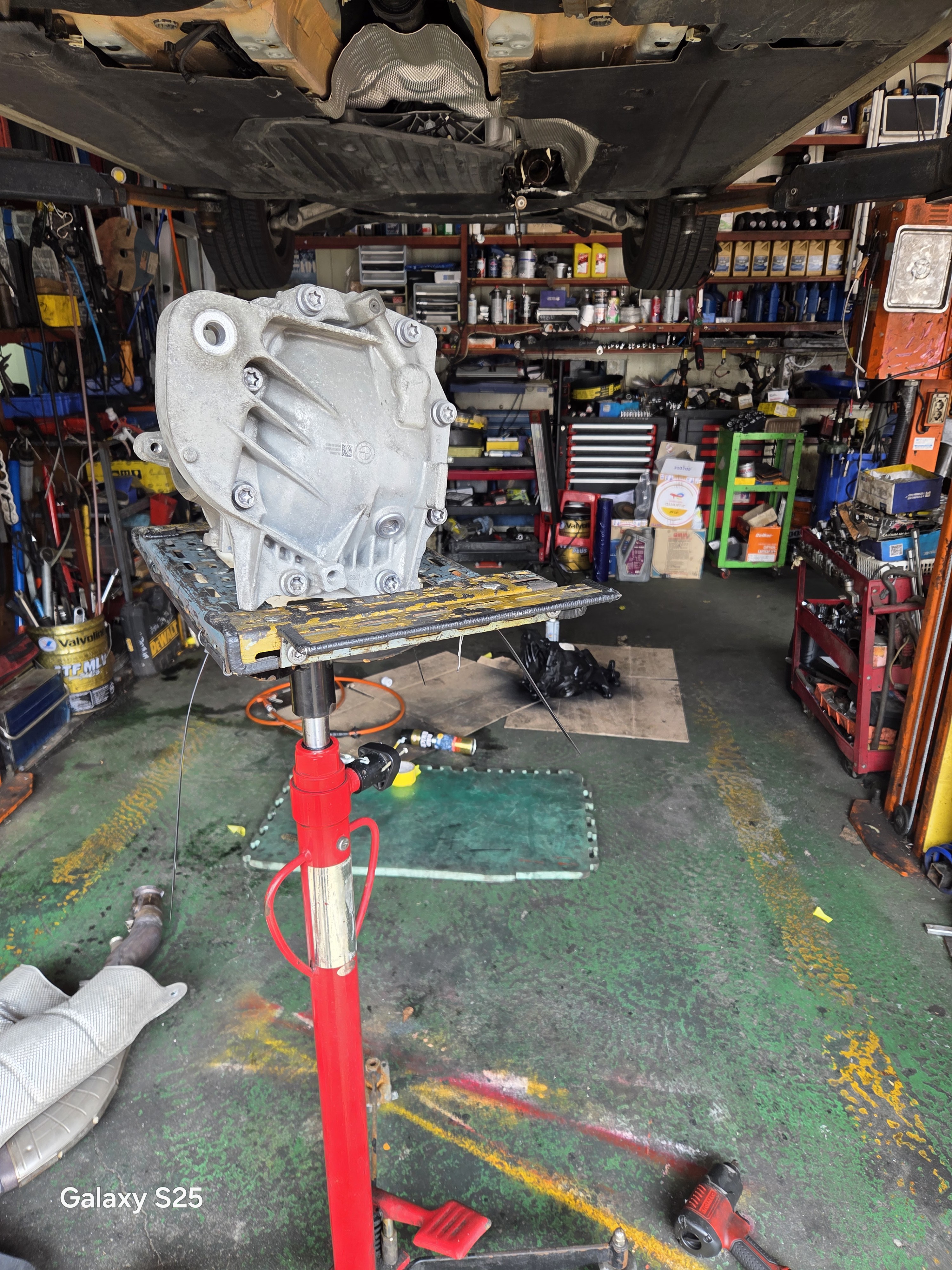 먼저 차량을 리프트에 올린 후 하체 전반을 점검했습니다. 타이어 마모 상태, 허브베어링, 프로펠러샤프트, 디퍼런셜 마운트 등을 하나씩 확인하며 정확한 소음 원인을 찾는 과정이 필요합니다. 수입차 하체 소음은 여러 원인이 있을 수 있기 때문에 정확한 진단 과정이 가장 중요합니다.